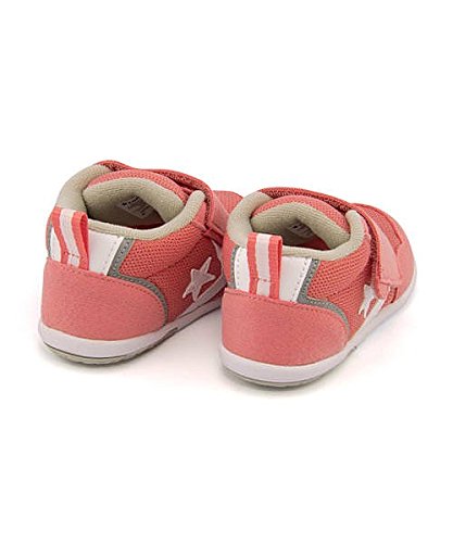 「ロードスター」のベビー向けアレンジモデル☆ 歩き始めの赤ちゃんに対応した、軽量で屈曲性の良いソールを採用。裸足感覚を体感できるよう薄めのアウトソール設計で健やかな足の成長を促進。足先はひろびろのルーミーラスト設計&ミッドカットモデルで不安定なベビーの足元を優しくサポートします!アッパーにはメッシュ素材を、インソールには通気孔を採用し通気性をグンとアップ!踵部分にはアクセントとしてリフレクターを使用し、安全性も考慮しています。また、足にフィットするカップインソールは取り外し可能で、いつも清潔にキープできます◎ ライニングには、肌触りの良いパイル地を使用♪ カカトのビッグタブ&ワンベルトタイプに加え、履き口が大きく開くオープンタンで脱ぎ履きラクラクです♪※展開サイズ:キッズ