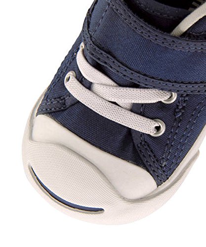 「ヒゲ」や「スマイル」など独特なディテールで親しまれているジャックパーセルに、ベビー用モデルが登場☆ タンが大きく開くオープンタン設計で、靴の脱ぎ履きがスムーズ♪ しなやかなラバーに、踵部分にはボードが付属し、足の曲がる位置でしっかり屈曲するソール設計。ゴム紐×ストラップに、かかとのビッグタブで脱ぎ履きしやすいデザインです。中敷は取り外して洗えるカップインソール仕様。ゆったりとしたルーミーラストで足先を自由に動かせます♪ お子様の足に優しい機能が沢山ついた、大人顔負けのオシャレな1足です☆※展開サイズ:キッズ