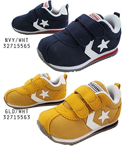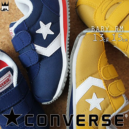 コンバース CONVERSE ベビー RM 男の子 女の子 子供靴 ベビー キッズ チャイルド スニーカー ■商品説明 NVY/WHT(ネイビー/ホワイト) GLD/WHT(ゴールド/ホワイト) ベビー RMのカラーアレンジモデルです。 人気のレトロランニングシューズをベビー向けに履きやすくアレンジしました。 大人っぽいスポーツミックススタイルも楽しめる、ネイビー/ホワイト、 ゴールド/ホワイトのクラシカルなカラーリングを採用。 踵部分にはボードを内蔵し、足の曲がる位置でしっかり屈曲するソール設計。 着脱しやすいオープンタン、フィッティング調整しやすい2本ベルト仕様です。 ■素材 アッパー:ナイロン/シンセティックスエード アウトソール:ラバー