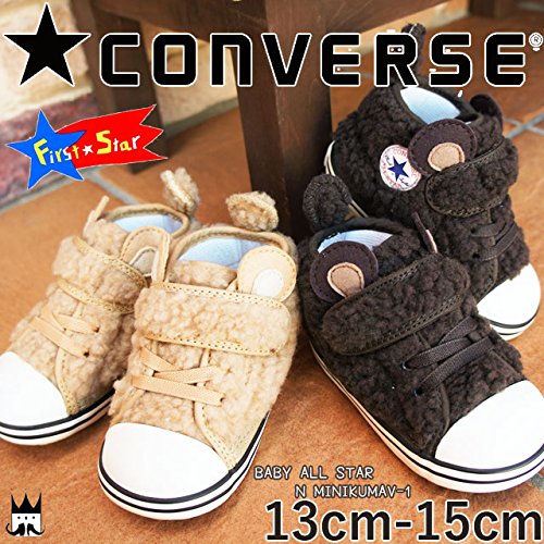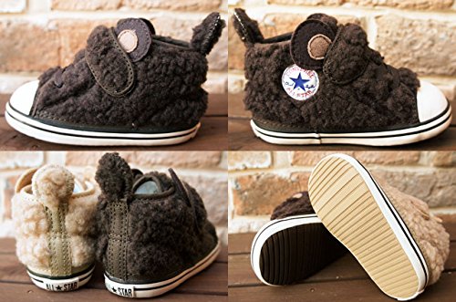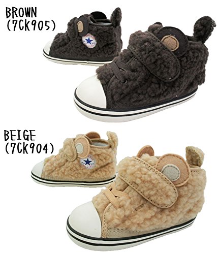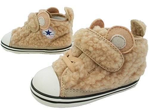 コンバース ベビー オールスター N ミニクマ V-1 ■商品説明 ブラウン 7CK905 32712599 ベージュ 7CK904 32712594 ベビー オールスター Nのパターン、素材アレンジモデル。 2015年秋冬にデビューし大好評だった「ベビー オールスター N クマ V-1」が、ブラウンとベージュの2カラーでリバイバル。脱ぎ履きしやすいベルトタイプで、モコモコのボア素材やフェルトで出来た耳のパーツがかわいらしい一足。 ソールには、しなやかなラバー素材を採用。 サポート力のあるボードを踵部分に内蔵し、足の曲がる位置ではしっかり屈曲する設計。 また、インナーには、シューズと足元を優しくサポートする厚みのあるフォームを使用。 ■素材 UPPER:ポリエステル OUTSOLE:ラバー
