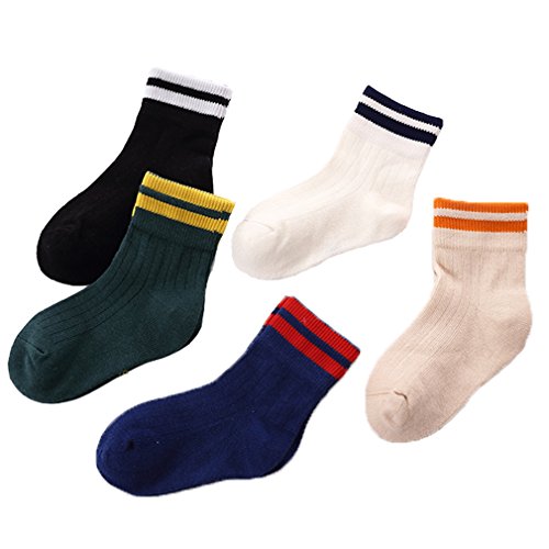 COSCO ソックス 靴下 キッズ コットン 子供靴下 保温ソックス 秋 冬 5足セット 男の子 女の子 (M, ライン)