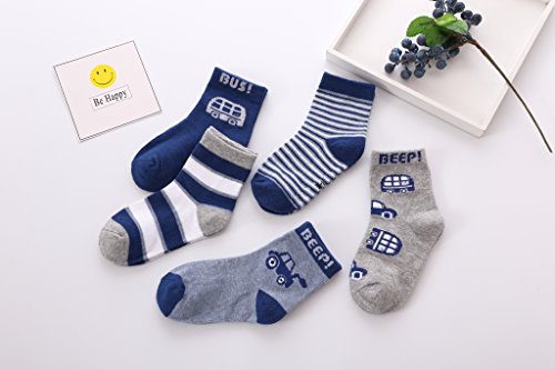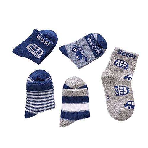 COSCO ソックス 靴下 キッズ コットン 子供靴下 保温ソックス 秋 冬 5足セット 男の子 女の子 (M, クルマ)