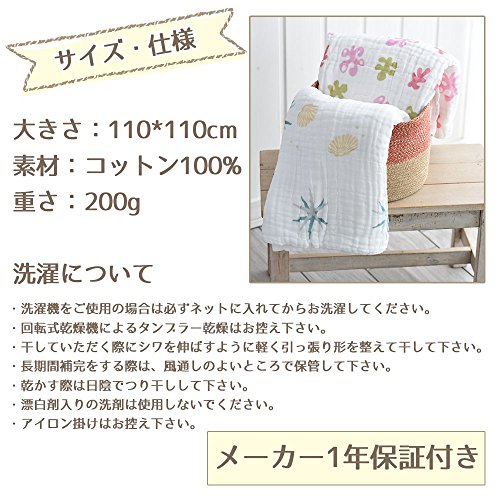 - サイズ:110*110 素材:100%コットン 6重ガーゼ仕様