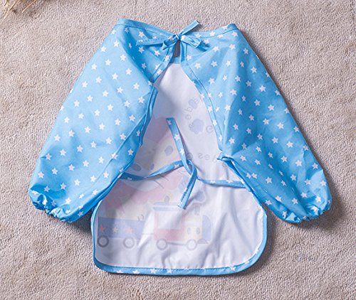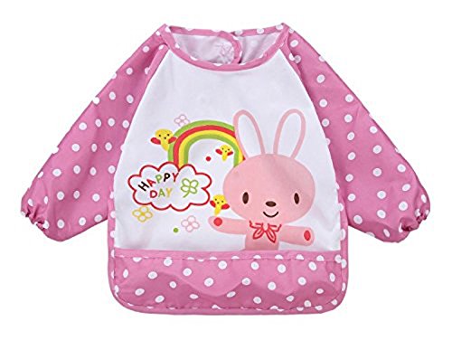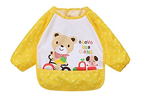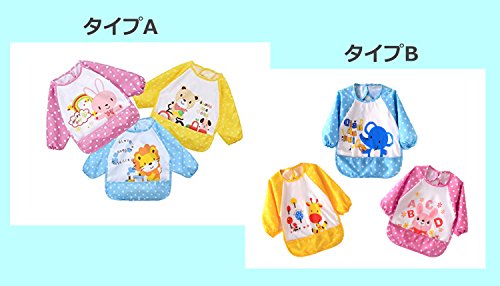 COTARON ベビーエプロン 長袖 ポケットつき 防水 動物柄 1歳〜3歳 3色セット (3色タイプA(ヒモ))