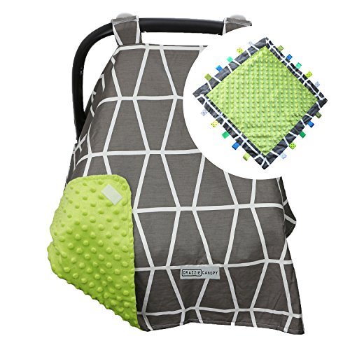5 Colors **Free Blanket** Car Seat Canopy by CRAZZIE with Matching Soft TAGZ Blanket (Owl Grey Green Minky with TAGZ Blanket) by CRAZZIE