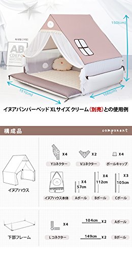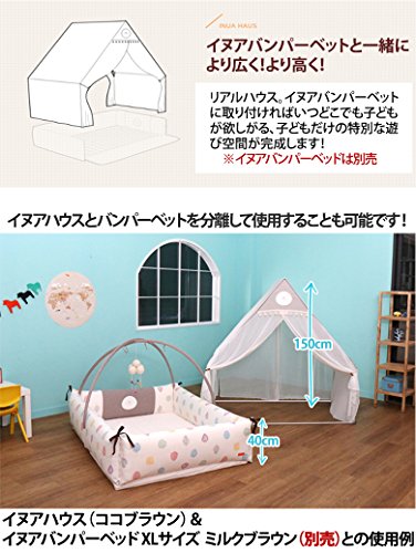 注意事項:イヌアバンパーベッド XLサイズ適合品。イヌアバンパーベッドは別売品(バンパーベッド無しでもイヌアハウスを屋内テントとして使用可能)。 夢見る子供の遊び空間 イヌアハウス 真冬に暖かい室内空間、子どもだけのドリームルーム。お友達を招待して思いっきり遊べるプレイハウス! リアルハウスデザイン まるで小さなお家にいるような、リアルハウスなかたちをした「イヌアハウス」は子どもたちだけの特別な空間です。もっと高く!ワイルドに!イヌアハウスの中で思い切りゴロゴロしても余裕のサイズです。お子様と一緒に、イヌアハウスを楽しみましょう〜 新生児から幼児までベビーベット・プレイハウス・キャノピーと多様な活用性と実用性!イヌアバンパーベットと一緒に使えばいつどこでも、くつろぎのお昼寝ができます。