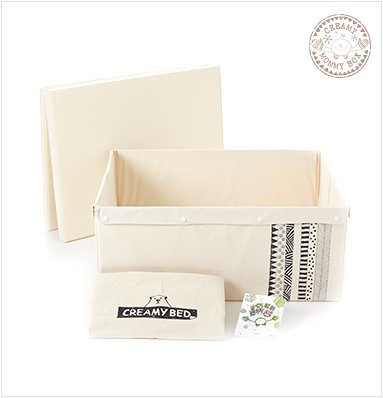 - クリーミーベッド(S):80x120cm(広げた時) / 80x60cm(折りたたみ時) / 厚さ 4cm / 重さ 約1.7kg