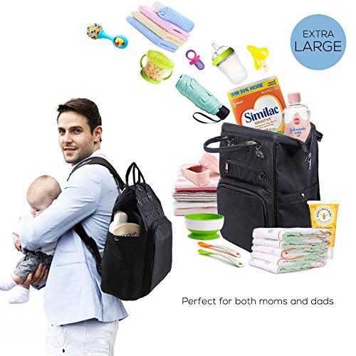 この広々としたバッグでこれからいつでも赤ちゃんのお世話をする事ができます、オムツ、服、オムツ替えマット、おもちゃ、ブランケット、おしゃぶり、ベビーフード、哺乳瓶など全てを収納して持ち運べます。