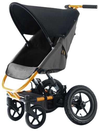 後タイヤにキャンバー&トーイン構造を採用。スタイルだけではなく、後タイヤの外側に8度広がったキャンバー構造は安定性を高め、ストローラーA以上の小回りの良さを実現。内側に1度入ったトーインは直進性をさらに高めることを可能に。アタッチメントを交換すればオフロード仕様(トレイルジョイント)、ジョギング仕様(アスレチックジョイント)にも変化