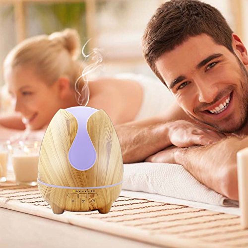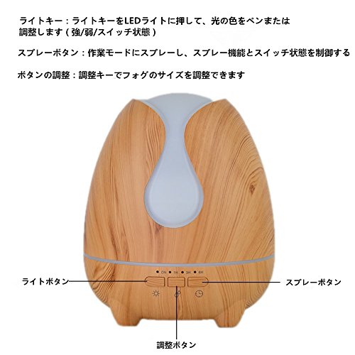 500ML香薰扩散器 超声波式空气洁净器 台上加湿器 心情灯 搭载有防空烧功能 定时 房间 公司,瑜伽教室等适合于各种场合(木纹风格)