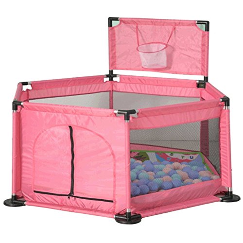 洗える ソフト ベビーサークル 軽量 倒れにくい 安全設計 ファスナー 扉 簡単組み立て <簡単に組み立て!> 収納 六角形 誕生日プレゼント【5色】 (Pink/with basket)