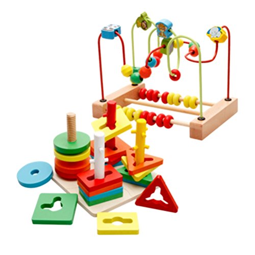 CXYP 知育玩具 赤ちゃんおもちゃ ビーズコースター キッズ 木製 ルーピング おもちゃ 指先トレーニング 積み木 セット ミニ サイズ 動物模様 早期開発 プレゼント (2点セット)
