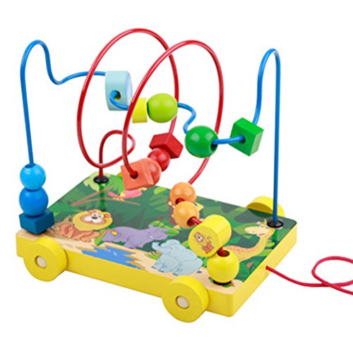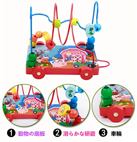 CXYP 赤ちゃんおもちゃ ビーズコースター キッズ 木製 知育玩具 ルーピング おもちゃ 指先トレーニング ミニ サイズ 動物模様 (A)