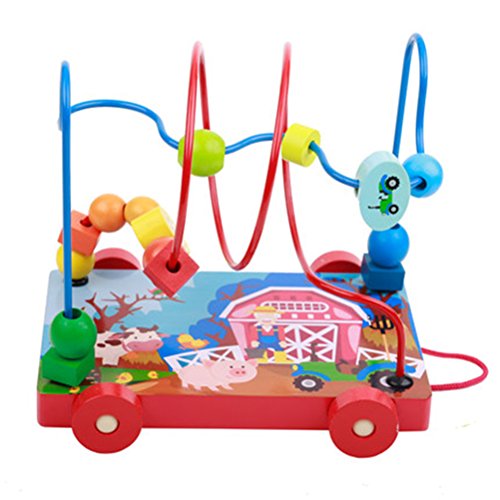 CXYP 赤ちゃんおもちゃ ビーズコースター キッズ 木製 知育玩具 ルーピング おもちゃ 指先トレーニング ミニ サイズ 動物模様 (C)