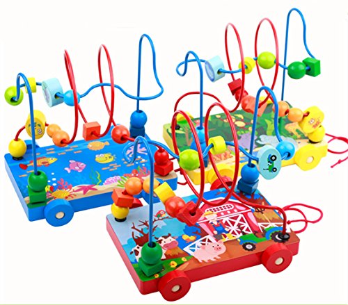 CXYP 赤ちゃんおもちゃ ビーズコースター キッズ 木製 知育玩具 ルーピング おもちゃ 指先トレーニング ミニ サイズ 動物模様 (01)
