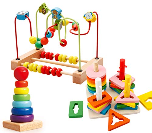 CXYP ビーズコースター 知育玩具 キッズ 幼児 おもちゃ 指先トレーニング ミニ ビーズコースター 木製 玉そろばん メイズ パズル 木琴 赤ちゃん ベビー 早期開発 可愛い お誕生日ギフト (3点セット)