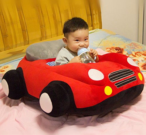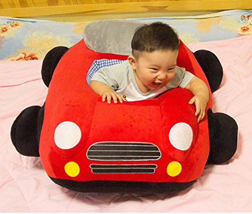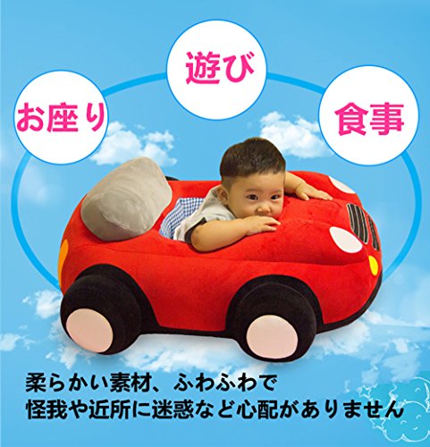 CXYP ベビーソファー ソフトチェア 車 ふわふわ カワイイ お座り練習チェア 安定感 キッズソファー ベビー家具 男女兼用 4ヶ月~3歳 70*50cm (レッド)