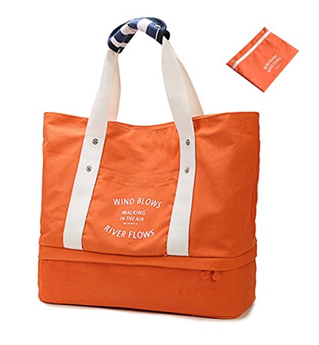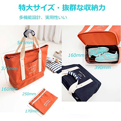 CXYP トートバッグ 多機能 旅行 靴まで収納 マザーズバッグ 大容量 インナーポチ付き 軽量 手提げ バック 4色 (オレンジ)
