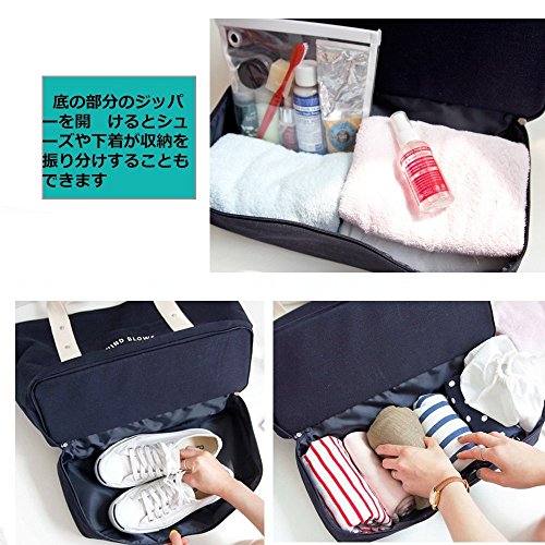• シンプルデザインで大きめのトートバッグ、収納力もたっぷりの便利グッズ。トラベル用に最適、下に靴や下着・収納を振り分け出来ます。
