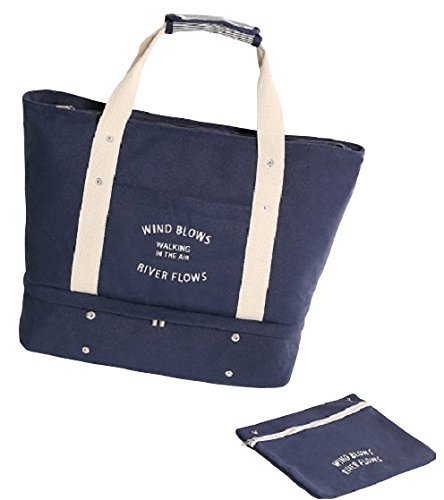 CXYP トートバッグ 多機能 旅行 靴まで収納 マザーズバッグ 大容量 インナーポチ付き 軽量 手提げ バック 4色 (ネイビー)