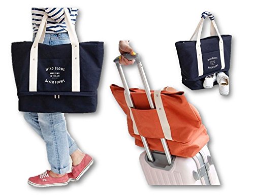 • シンプルデザインで大きめのトートバッグ、収納力もたっぷりの便利グッズ。トラベル用に最適、下に靴や下着・収納を振り分け出来ます。