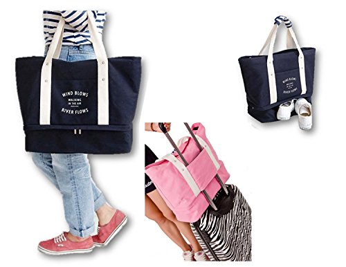 • シンプルデザインで大きめのトートバッグ、収納力もたっぷりの便利グッズ。トラベル用に最適、下に靴や下着・収納を振り分け出来ます。