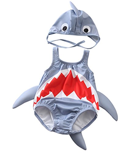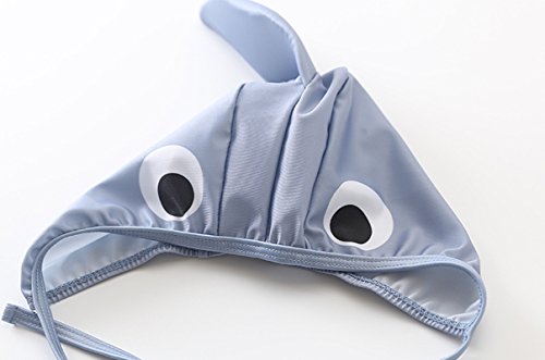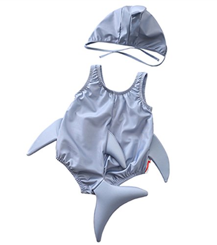 CXYP 水着 キッズ ベビー水着 2点セット 赤ちゃん サメ 可愛い キャップ 3D 男の子 女の子 85 90 100 海 温泉 記念写真 (L(70-80), グレー)