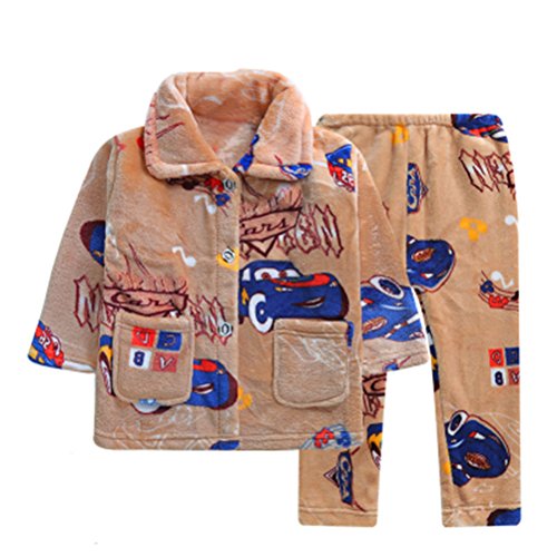 CXYP ベビー 子供 パジャマ 上下セット ルームウェア パジャマセット 上着&ズボン 赤ちゃん 秋冬 動物 ふわふわ カワイイ キャラクター 男の子 女の子 防寒着 寝間着 (110cm, 車)