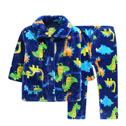 CXYP ベビー 子供 パジャマ 上下セット ルームウェア パジャマセット 上着&ズボン 赤ちゃん 秋冬 動物 ふわふわ カワイイ キャラクター 男の子 女の子 防寒着 寝間着 (130cm, 恐竜)