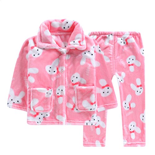 CXYP ベビー 子供 パジャマ 上下セット ルームウェア パジャマセット 上着&ズボン 赤ちゃん 秋冬 動物 ふわふわ カワイイ キャラクター 男の子 女の子 防寒着 寝間着 (120cm, ウサギ)