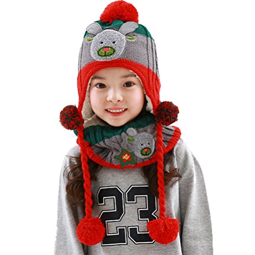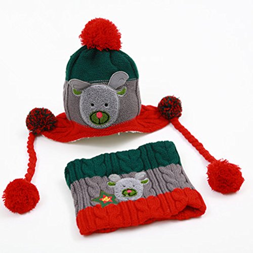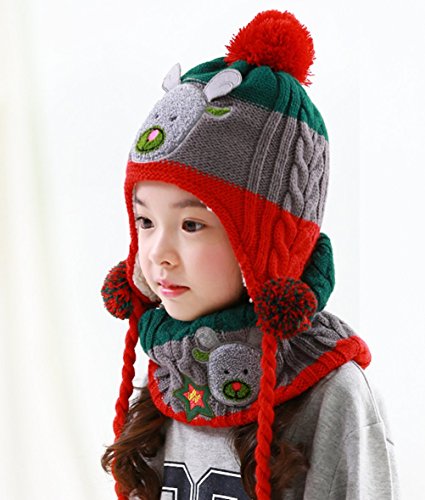 CXYP 2017秋冬 キッズ 帽子&マフラー 2点セット トナカイ 赤鼻 ニット帽 カワイイ 防風 防寒 毛糸 男の子 女の子 あったか 男女兼用 クリスマス プレゼント (52cm~56cm, レッド)