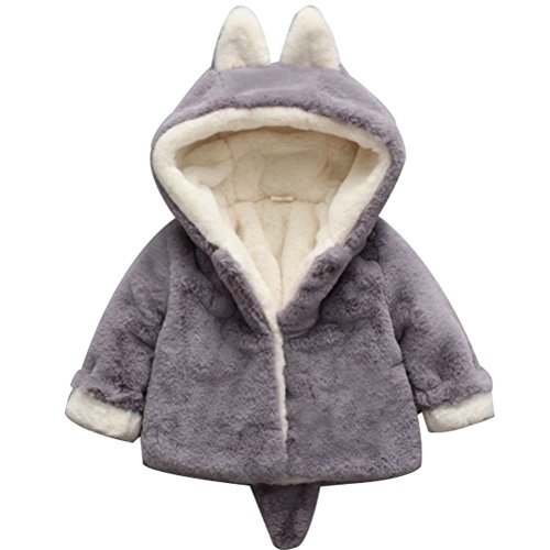 CXYP 子供 女の子 ベビー服 ウサギの耳 コート カワイイ ふわふわ もこもこ カバーオール ロンパース キッズ服 アウトドア おしゃれ (90cm, グレー)