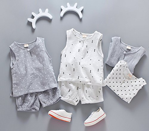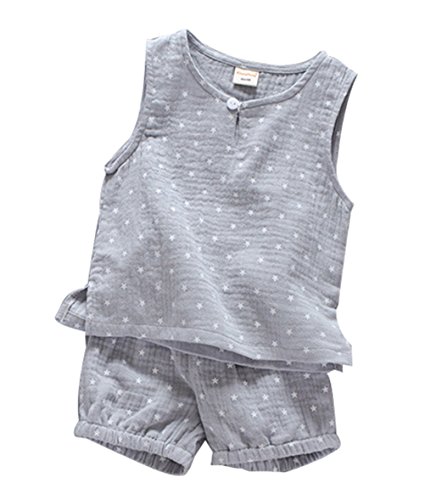 CXYP ッズ服 夏 男の子 上下セット キャミソール 星 ハーフパンツ ボーイズ セットアップ カワイイ コットン 子供服 カジュアル 80cm~110cm (グレー 90cm)