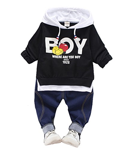 CXYP キッズ服 春秋 男の子 上下セット コットン 子供服 カジュアル 幼児 長袖 80cm~110cm (80cm, ブラックⅠ)