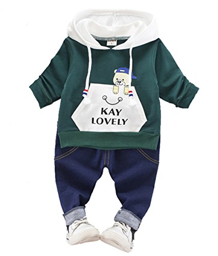 CXYP キッズ服 春秋 男の子 上下セット コットン 子供服 カジュアル 幼児 長袖 80cm~110cm (80cm, グリーンⅠ)