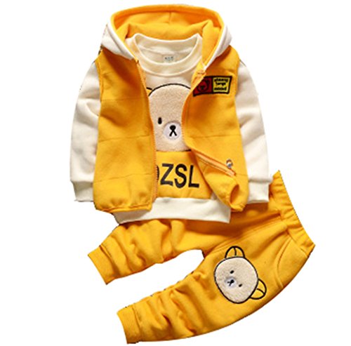 CXYP キッズ服 秋冬 女の子 男の子 上下3点セット チョッキ ベスト コットン 子供服 クマ カワイイ 暖かい カジュアル 幼児 長袖 80cm~110cm (100cm, イエロー)