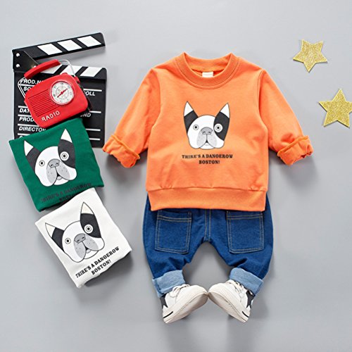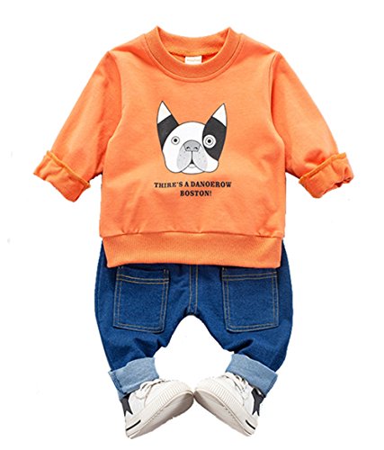 CXYP キッズ服 春秋 男の子 上下セット 犬 カワイイ コットン 子供服 カジュアル 長袖 80cm~110cm (80cm, オレンジ)