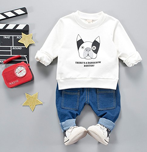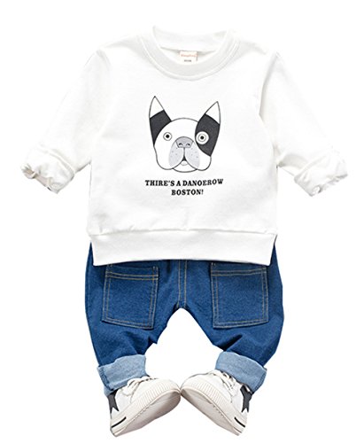 CXYP キッズ服 春秋 男の子 上下セット 犬 カワイイ コットン 子供服 カジュアル 長袖 80cm~110cm (90cm, ホワイト)