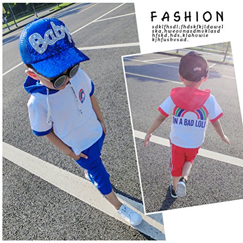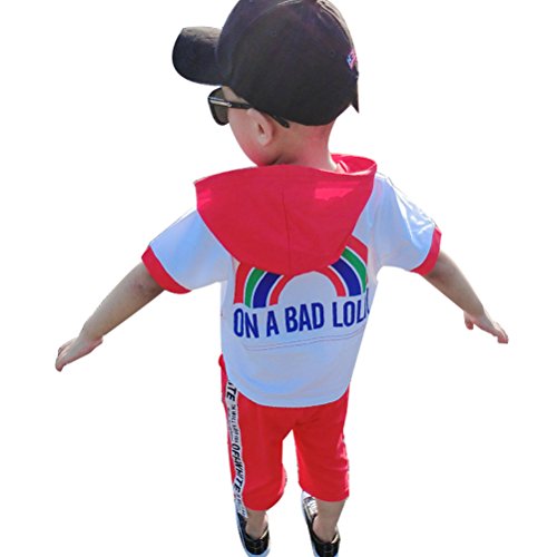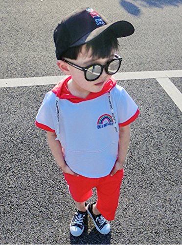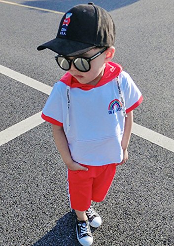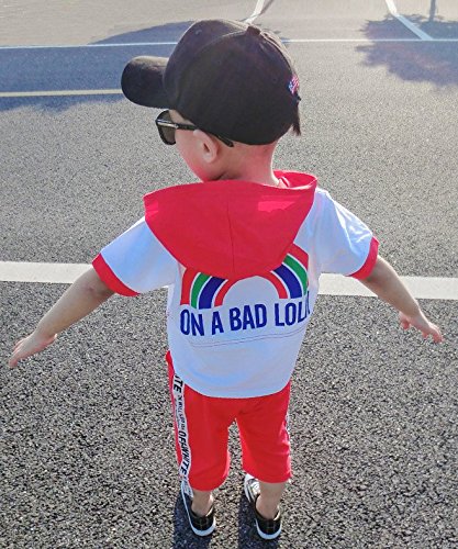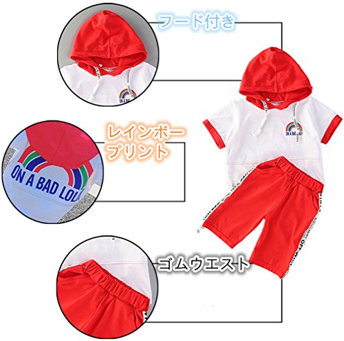 CXYP キッズ服 夏 男の子 上下セット 半袖 ハーフパンツ フード付き レインボー ボーイズ 涼しげ セットアップ コットン 子供服 カジュアル 90cm 100cm 120cm 130cm 140cm (140cm, レッド)