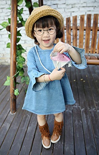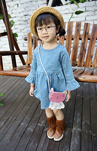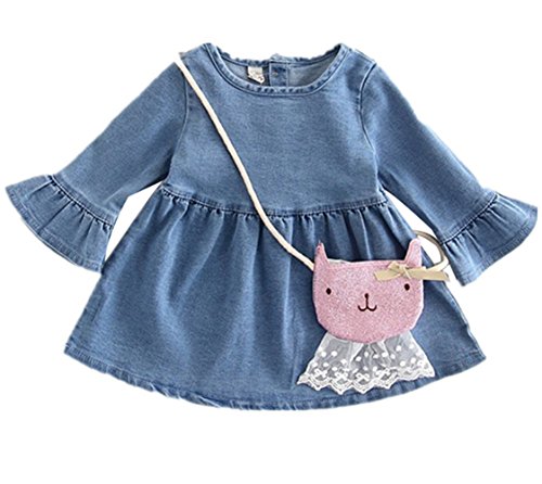 CXYP [春秋] 子供 ガールズ ゆったり ワンピース セット ミニバッグ付き カワイイ キッズドレス 子供服 プリンセス 入園式 お出かけ 80cm~120cm (100cm, ブルー)