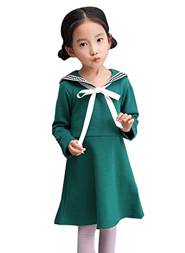 CXYP 春秋 子供服 女の子 ガールズ ワンピース スクール カワイイ キッズドレス プリンセス 海軍風 学院風 通園 通学 演出 100cm~150cm (120cm, グリーン)