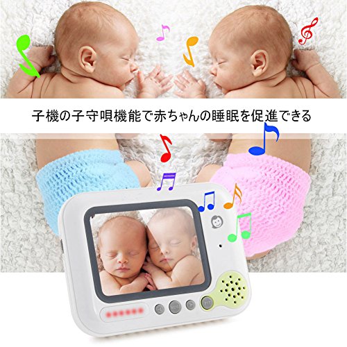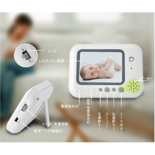 - 双方向会話:カメラとモニターにはマイクとスピーカーが搭載しています。もの音や赤ちゃんの泣き声などがすぐにわかります。音声の双方向通信可能、ママとベビー通話できます。いつでもベビーの声を聞こえて、ベビーと通話して安心することができる