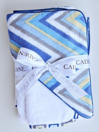 Caden Lane Ikat Collection Chevron Hooded Towel Set, Blue, Infant by Caden Lane