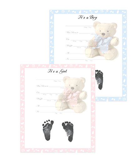 Fade resistant ink made specifically for taking prints gives greater detail in baby footprints or handprints and no special paper required. Archive quality, acid free card stock included to help preserve keepsake though the years.;Made in USA. Safe for newborns and pets - Non-toxic, latex free, and no harsh chemicals.;Larger print surface can be used for adults and older children too.;Improved washable footprint ink formula cleans off easily with soap and water.;Two sets of larger 3x5 ink strips (total of 4 sheets) makes up to 4 - 8 keepsake prints for most children under 12 months.