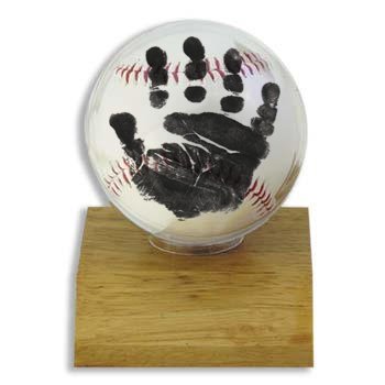 Genuine Light Wood Base;Non-toxic, baby-safe handprint ink kit included;100% blank white baseball (included) allows more room for prints and details;Ultra clear UV protective globe (Acid & PVC free);Room for engraving plate (not included)