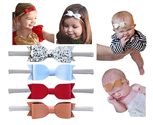 California tot Glitter Faux Leather Bow – ストレッチヘッドバンドベビー幼児の女の子、4のセット