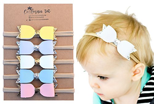 California tot Glitter Fauxレザーbow-stretch用ヘッドバンド赤ちゃん乳児幼児子供用、5のセット