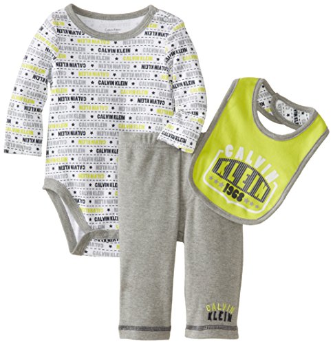 【アメリカ買付商品】 CalvinKlein カルバンクライン ボディスーツ&パンツ ベビー 3点セット 長袖ボディスーツ、パンツ、リバーシブルBIBの3点セット ギフトにもおススメ☆ サイズ:3/6ヶ月 6/9ヶ月 カラー:黄緑×グレー 素材:コットン60% ポリエステル40% 洗濯表示:洗濯機可(※商品付属の洗濯表示をご覧ください。) 輸入国:アメリカ 生産国:中国
