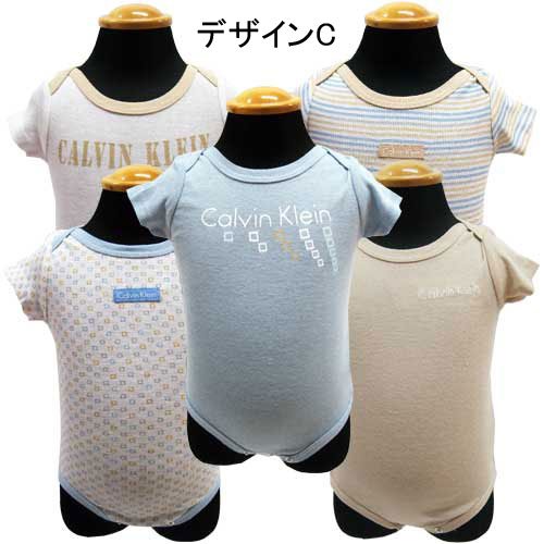 CalvinKlein カルバンクライン ベビー服 ベビー下着 ロンパース ボディスーツ 5枚セット-デザインC/0/3ヶ月=約~55cm