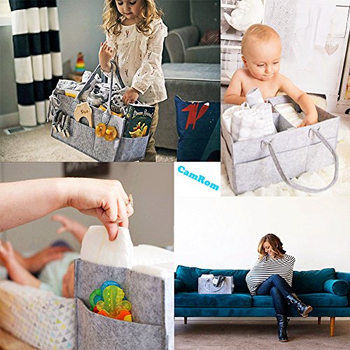 CamRomベビーおむつストッカー、マザーズバッグ ママバッグ トートバッグ、ベビーおもちゃおむつホームポータブル収納袋、赤ん坊おむつキャディーポータブルオーガナイザーストレージコンテナ、おむつ、子供おもちゃ、および赤ん坊のためのプレミアムストレージは拭く、ポータブルな車組織と子供部屋ストレージバッグ (グレー)